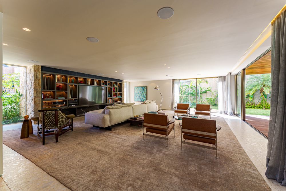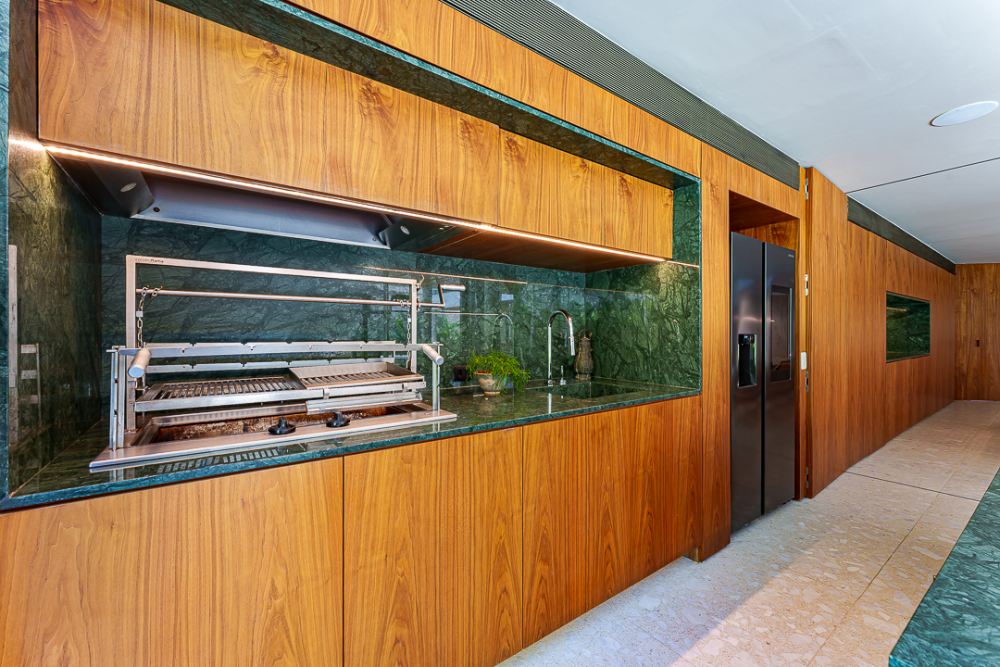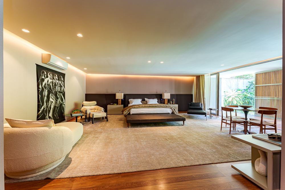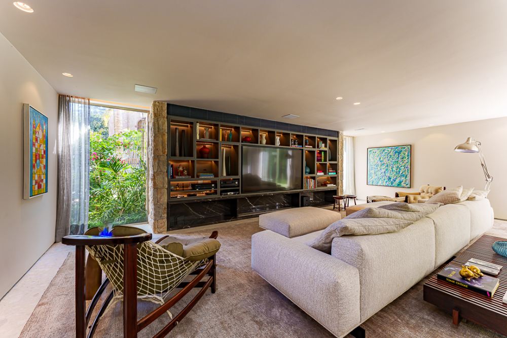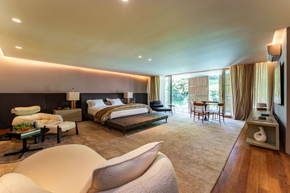 Moderna e sofisticada ! Venda MOBILIADA ! Arquitetura David Bastos, elevador , escritório, home, suite master com 240m², 2 closets, varanda e sala de banho em mármore paginado branco Paraná, armários Ornare, espaço gourmet integrado com a sala de jantar, piscina natural com 130m², sauna , vestiário e lindo paisagismo. Venha conhecer !