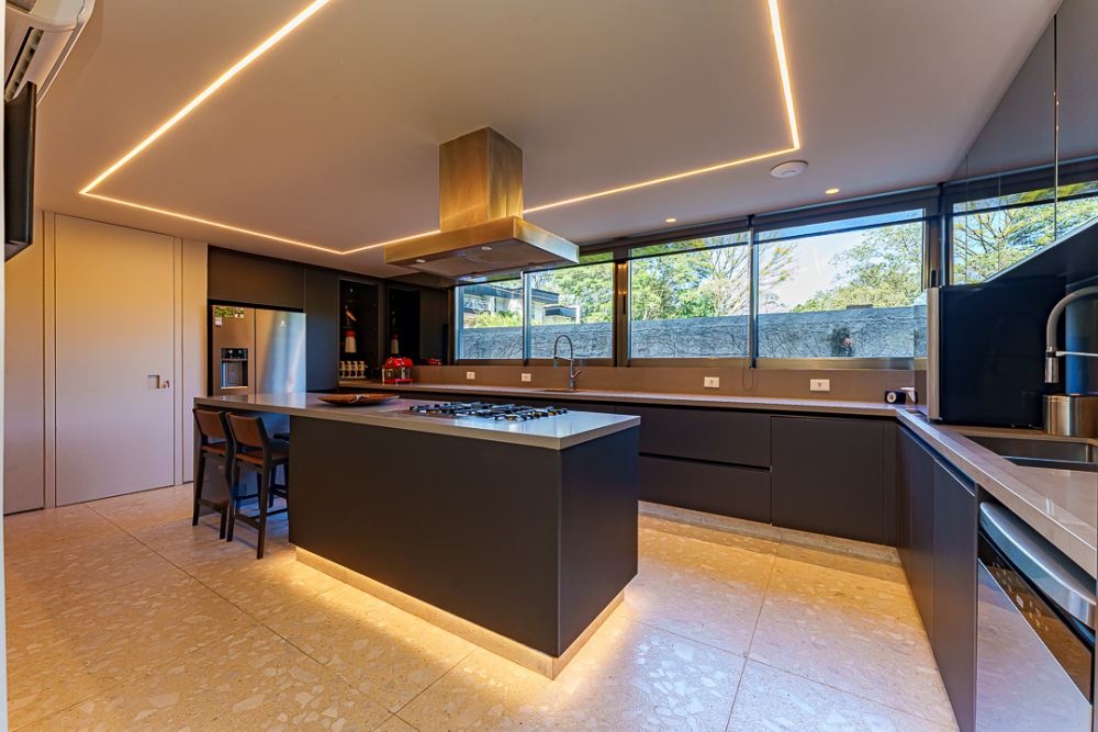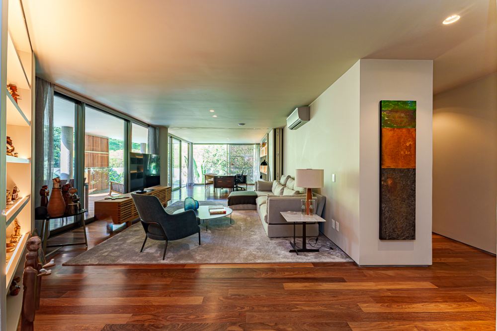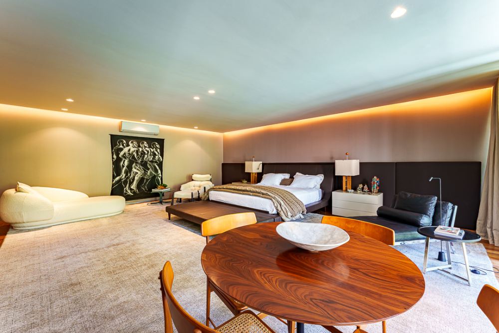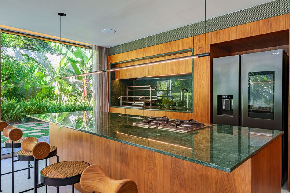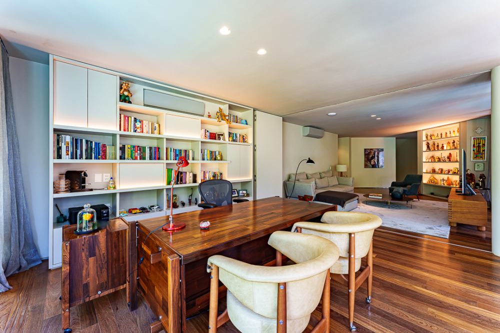 Moderna e sofisticada ! Venda MOBILIADA ! Arquitetura David Bastos, elevador , escritório, home, suite master com 240m², 2 closets, varanda e sala de banho em mármore paginado branco Paraná, armários Ornare, espaço gourmet integrado com a sala de jantar, piscina natural com 130m², sauna , vestiário e lindo paisagismo. Venha conhecer !