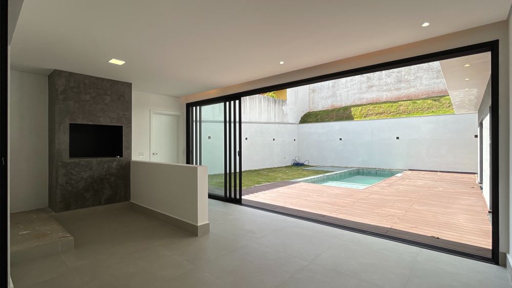 Casa moderna, acabamento impecável, living para 3 ambientes, completa de armários e amplo lazer com piscina e churrasqueira. Venha conhecer !